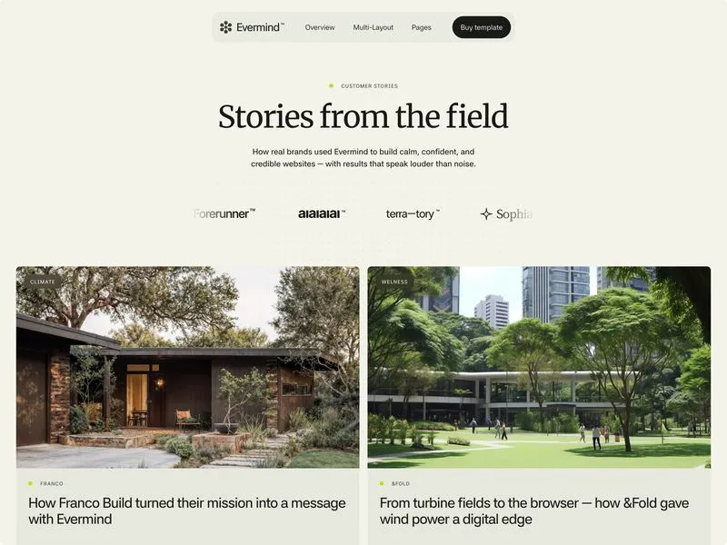 But their old site told none of that story. No mission. No clarity. Just concrete blocks of text and a handful of outdated renders. That’s where Evermind™ came in.